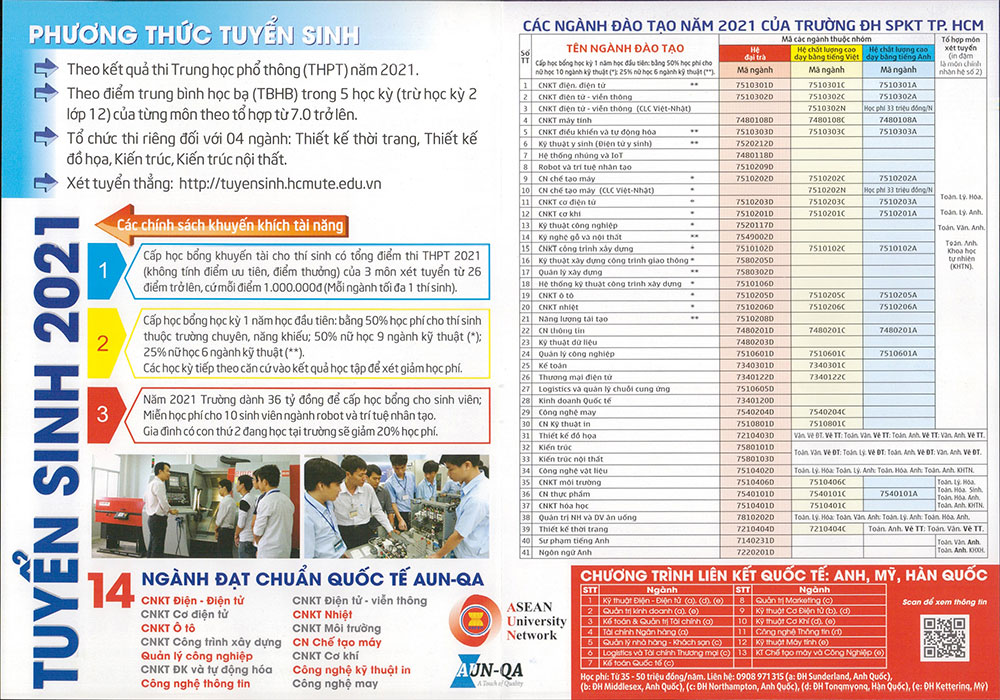 Thông báo tuyển thẳng, ưu tiên xét tuyển thẳng, xét tuyển bằng học bạ THPT và xét điểm thi THPT 2021 của trường ĐHSPKT Hồ Chí Minh
